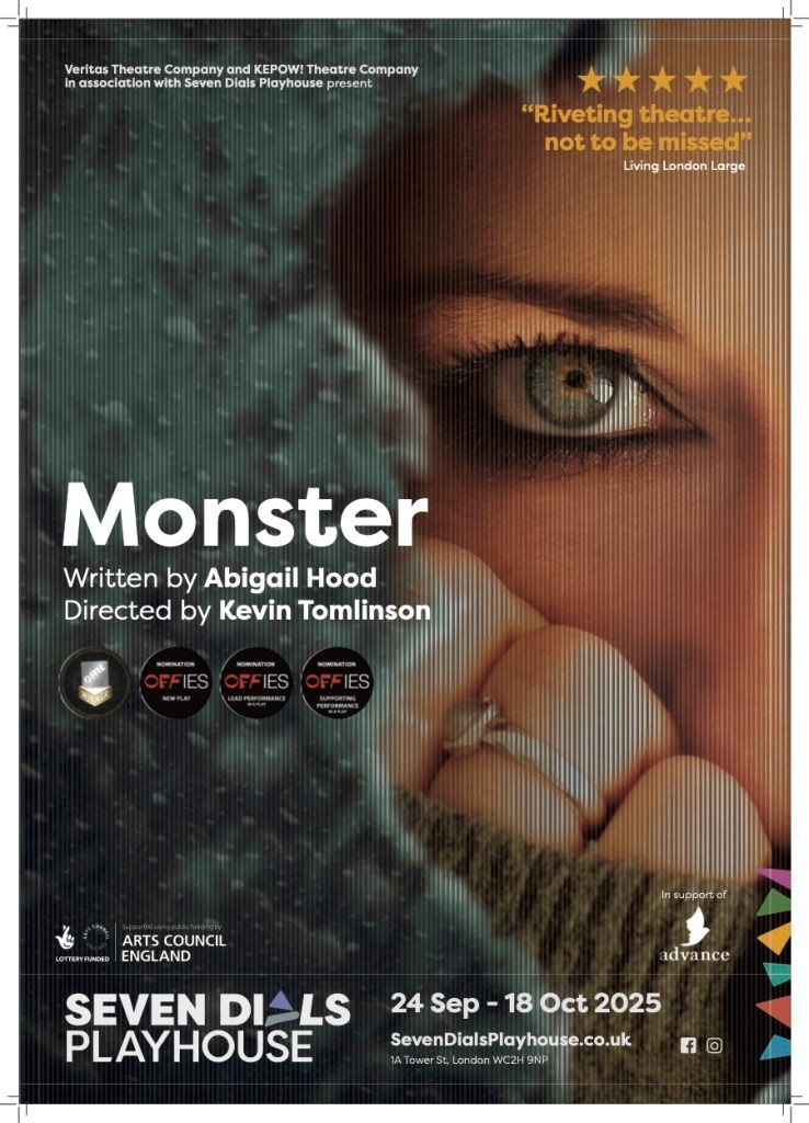 Monster at Seven Dials Playhouse supporting and supported by Advance, a charity that supports women and girls affected by domestic abuse and sexual violence, including those in contact with the criminal justice system. Advance provides advocacy, practical support, and services to help women rebuild their lives. For more information, or to make a donation, please visit www.advancecharity.org.uk